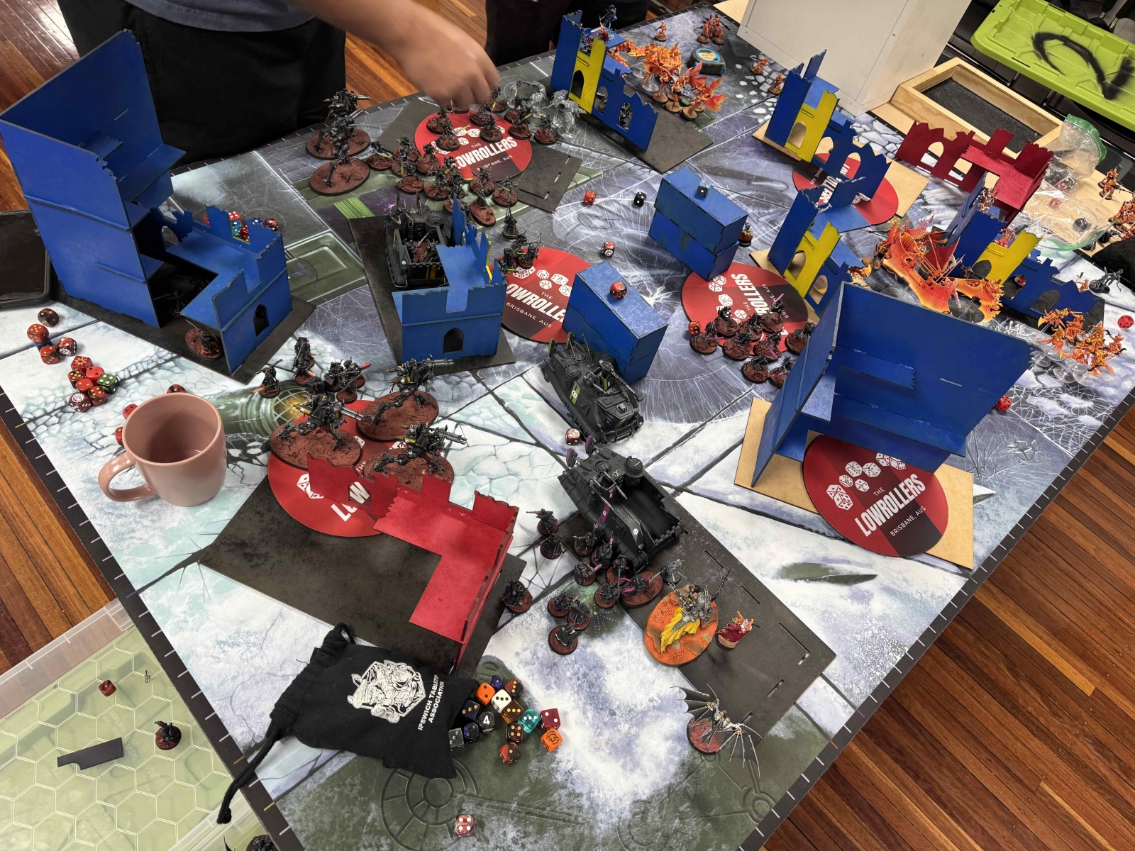 More important were the awesome games being played! I was rocking some very Grey Knights (including a Riptide comandeered as a Nemesis Dread Knight) but the might of what felt like 1000 Astra Militarum troops and tanks (AND A BANEBLADE) proved to be .. the bane of my existence?